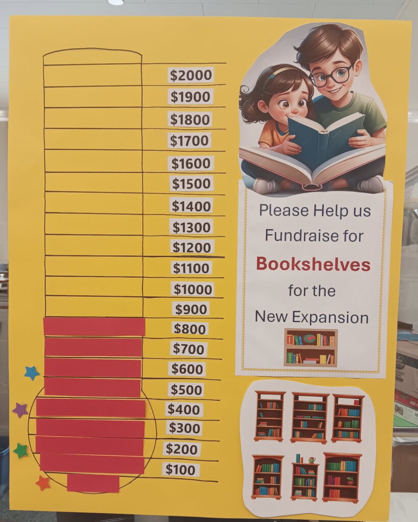 So far $800.00 has been donated to the bookshelves! YAAAYYYY!!!